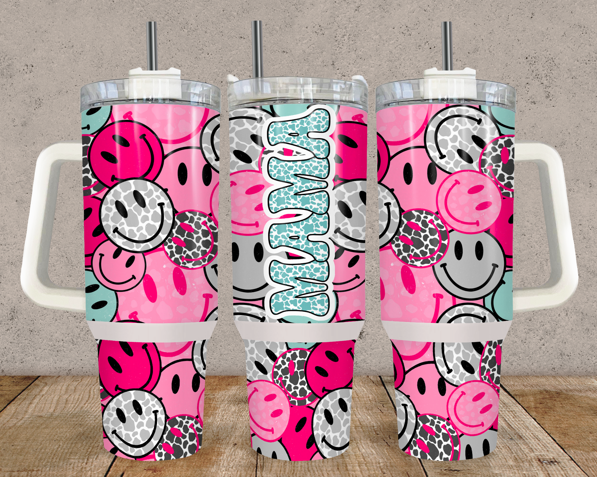 40oz. Happy Face Mama Tumbler with Handle