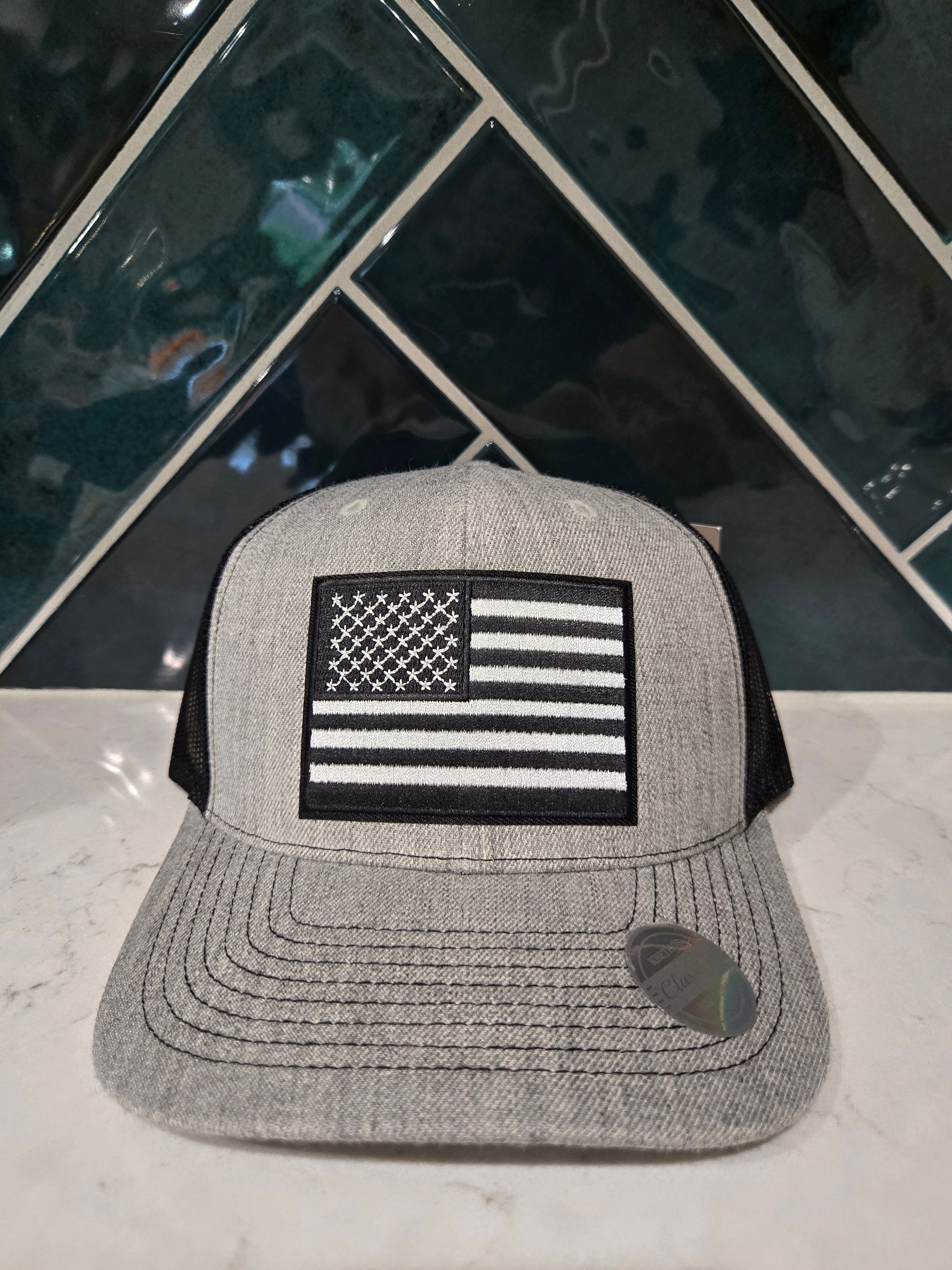 Black and White American Flag Patch 6 Panel Mesh Cap