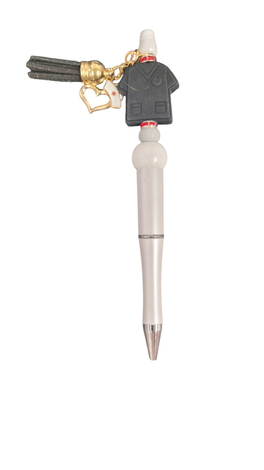 Elevate your writing experience with the Black Scrub and Flossie Tassel Beaded Pen! This stylish pen features a unique design with a touch of sophistication, making it a perfect accessory for your desk. Indulge in smooth writing and stand out with this eye-catching pen today!