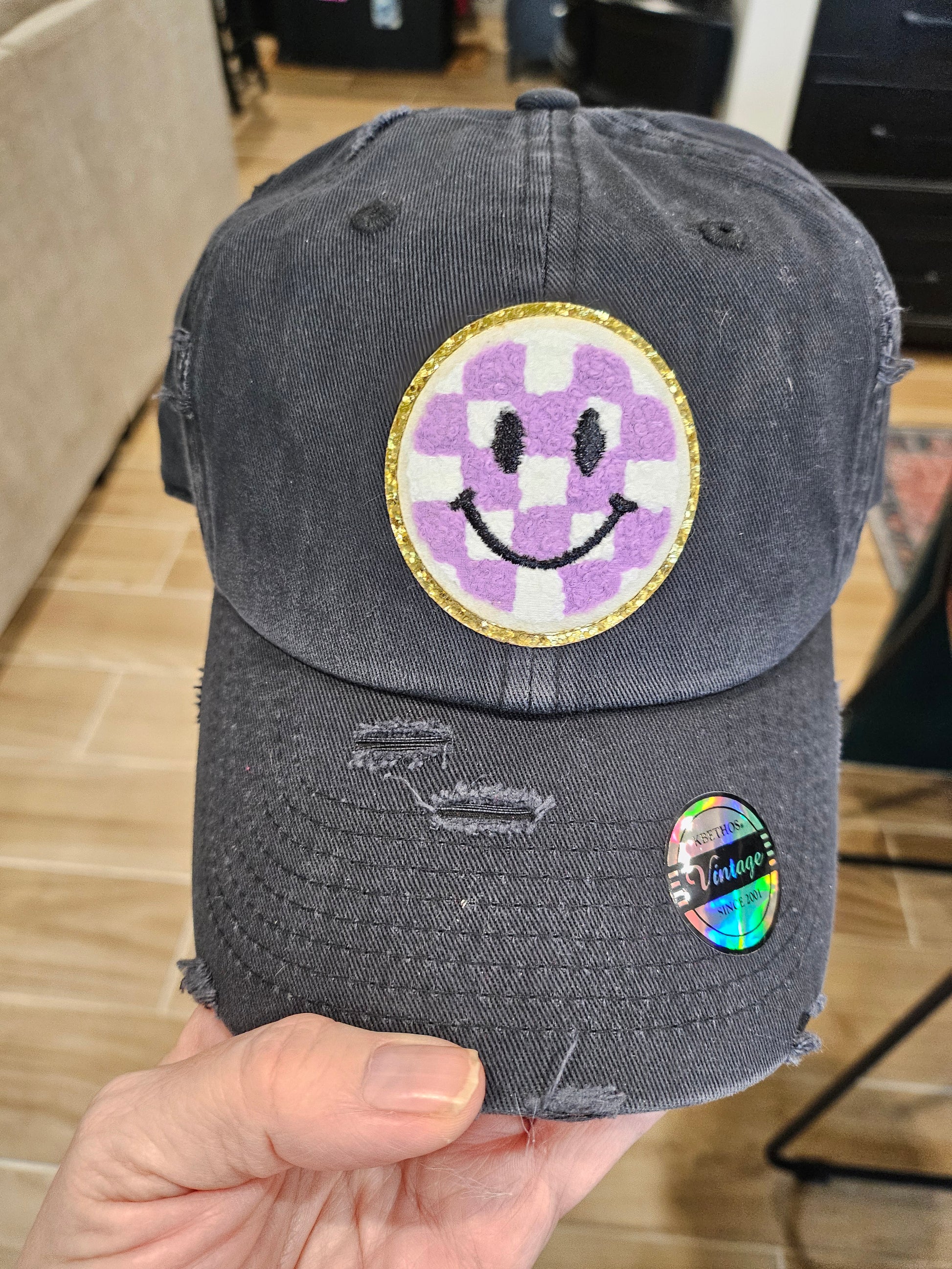 Step up your style game with our Black Vintage Embroidered Purple Check Smiley Baseball Cap. This cap exudes a timeless vintage charm with its embroidered smiley motif, making it a must-have accessory for those who appreciate classic designs.
