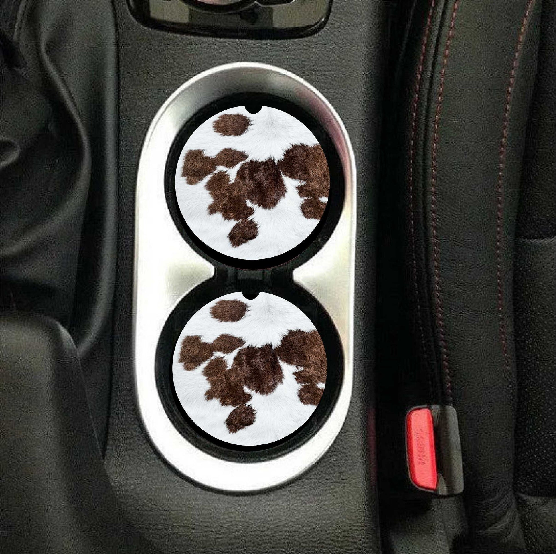 Cowhide Brown and White Car Coasters