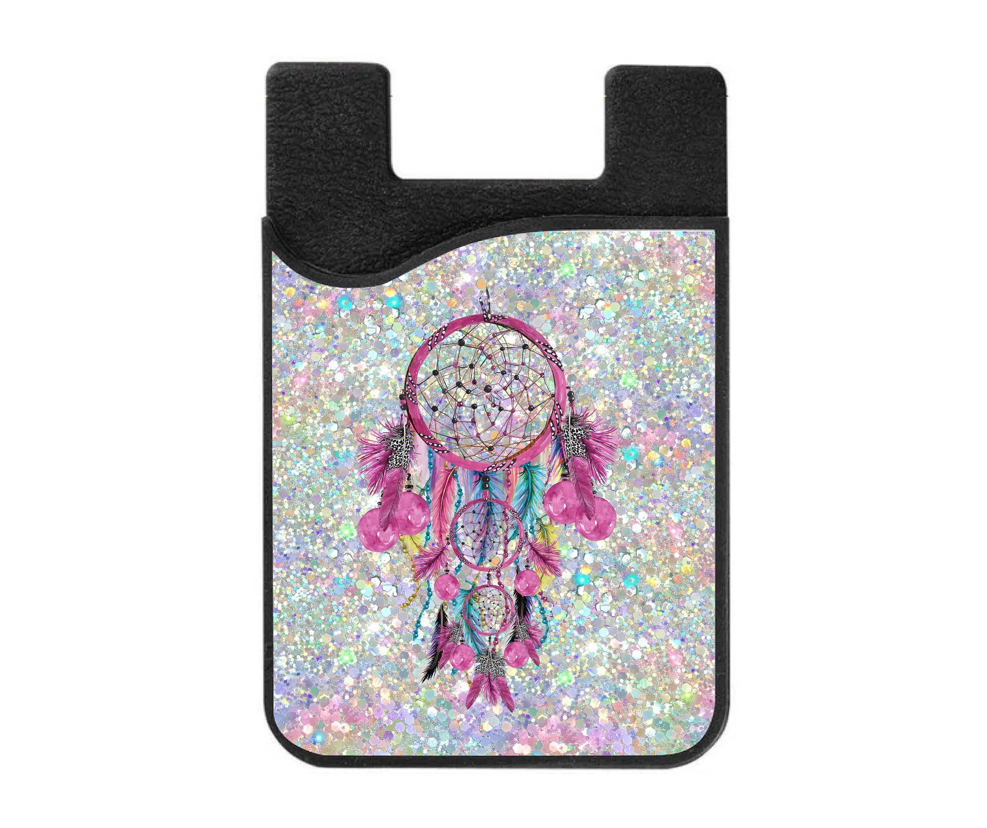 Our card wallets are super cute and convenient too! Card Caddy Phone Wallet. Black, silicone, 3-3/4" x 2-1/4" x 1/8". Imprint area is 2" x 2.5". A two-in-one silicone phone pouch fits credit cards, IDs, or cash and also features a removable microfiber screen cleaner. Secure Card Caddy to the back of your device with a 3M adhesive. 3M adhesive insures the wallet will not detach and when removed, it leaves no residue.