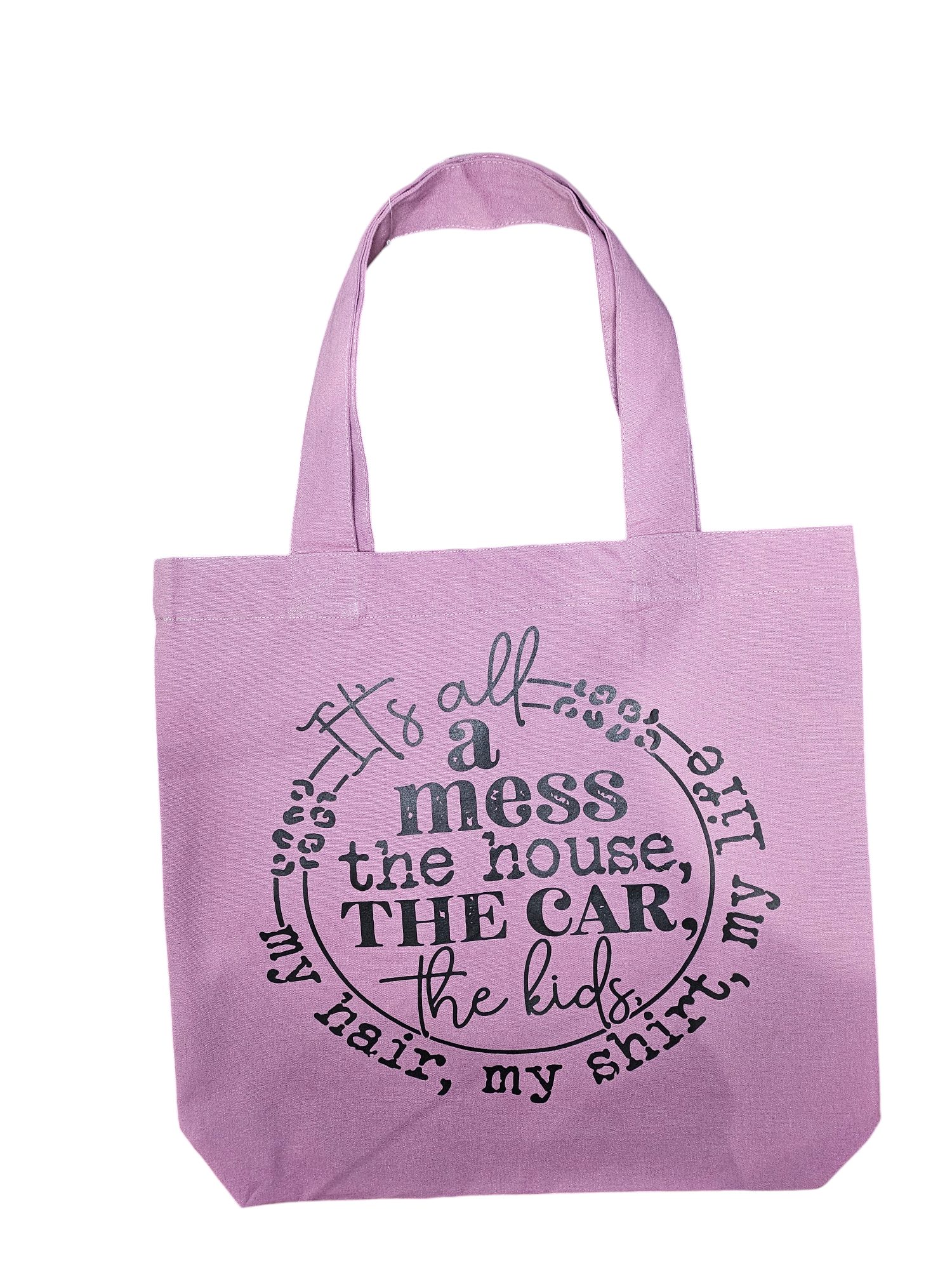 Carry your belongings in style with the 'It's All Mess' canvas tote bag! Made from durable material, this tote features a unique design that is sure to turn heads. With a spacious interior, it's perfect for your everyday essentials. Elevate your fashion game with this chic and functional tote bag today!