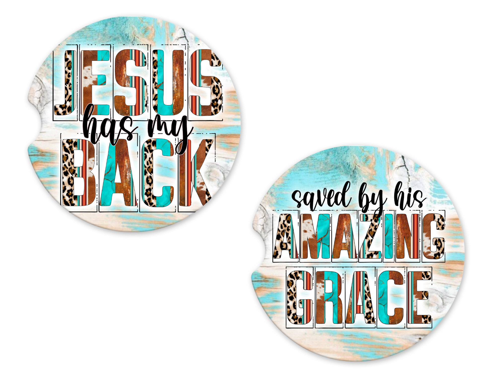 Jesus Has My Back& Saved By Amazing Grace Car Coasters