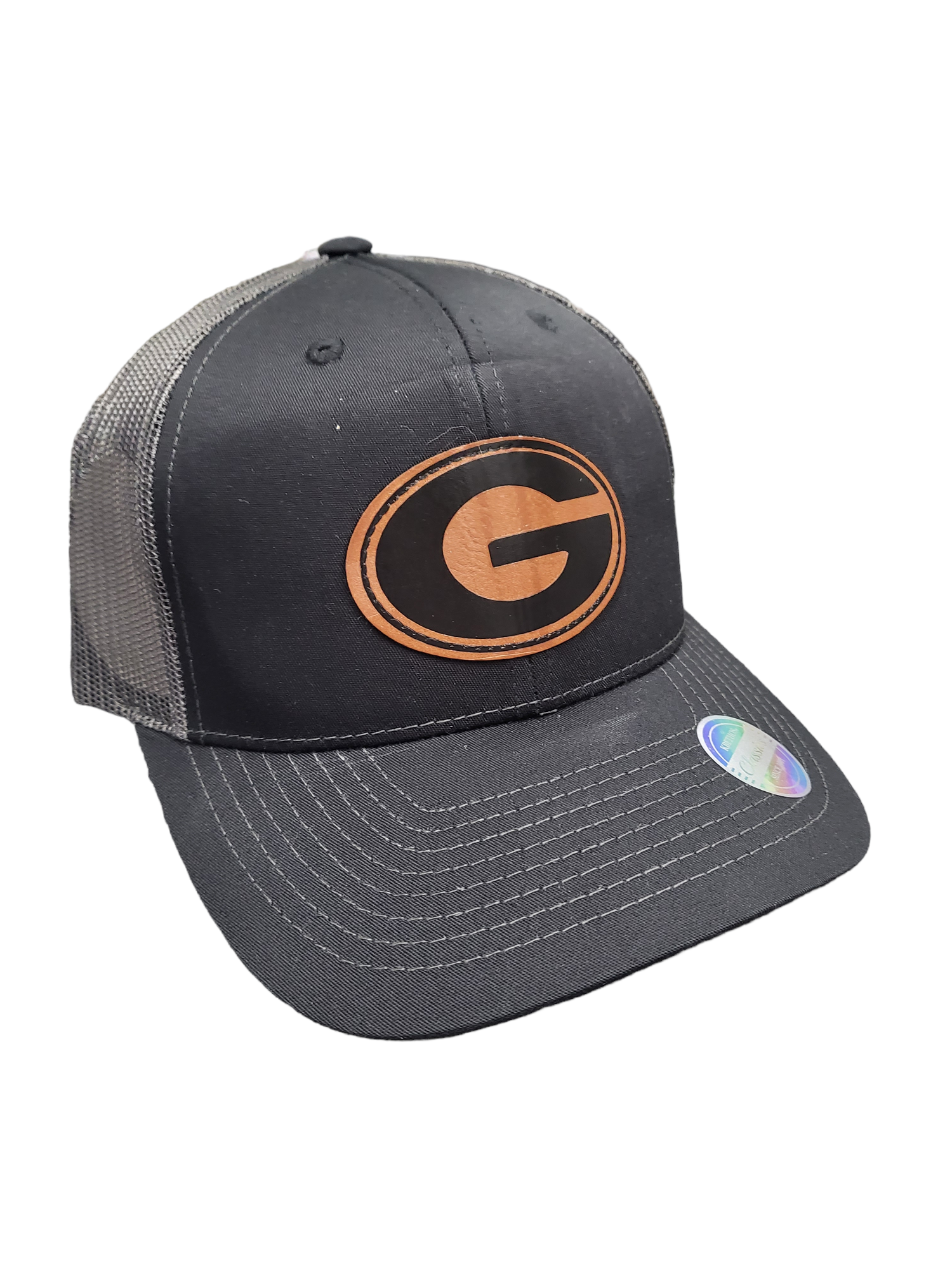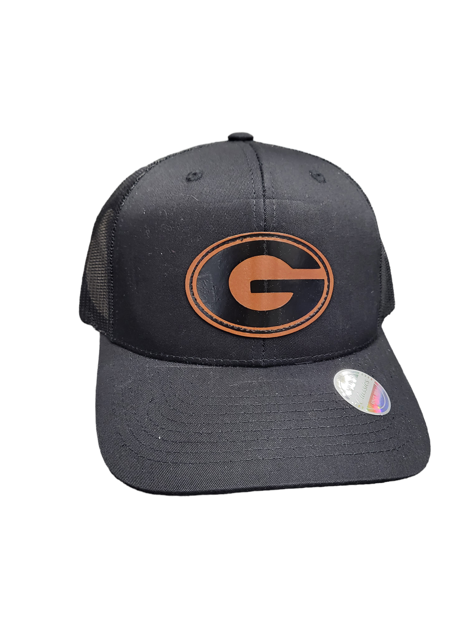 Leather Sports Patch 6 Panel Mesh Back Ball Cap