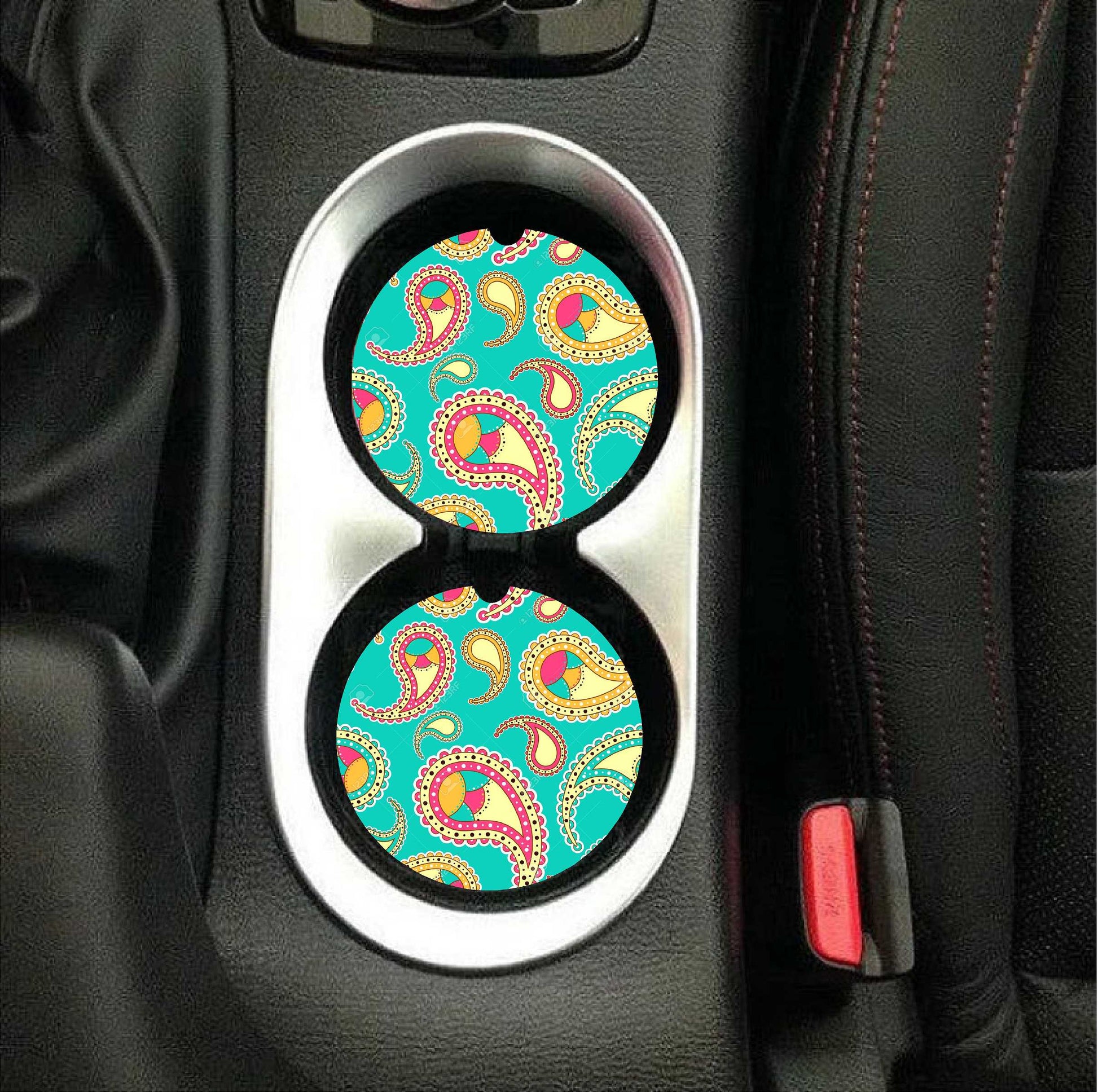 Mint Paisley Car Coasters