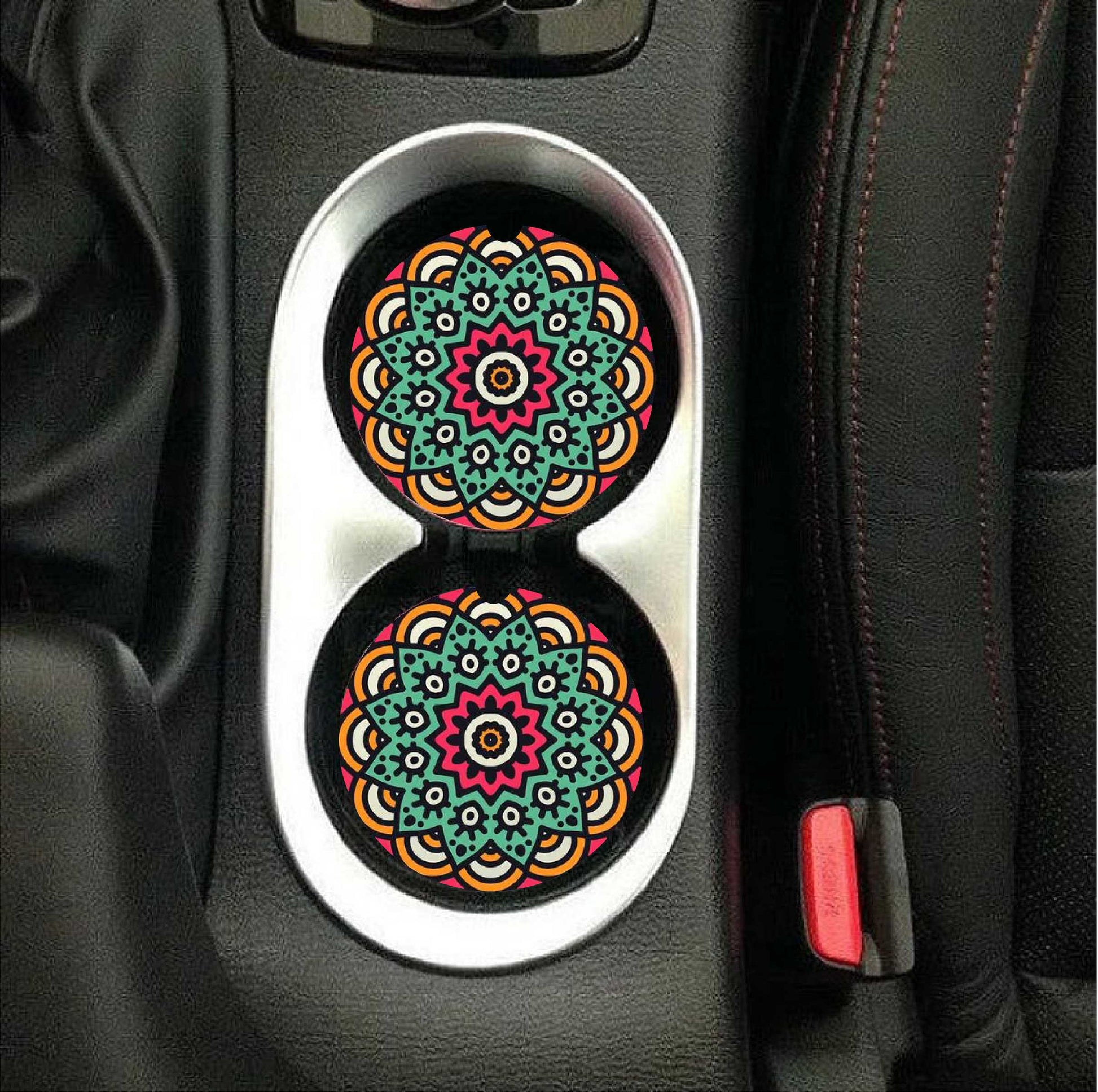 Mint & Pink Mandala Car Coasters