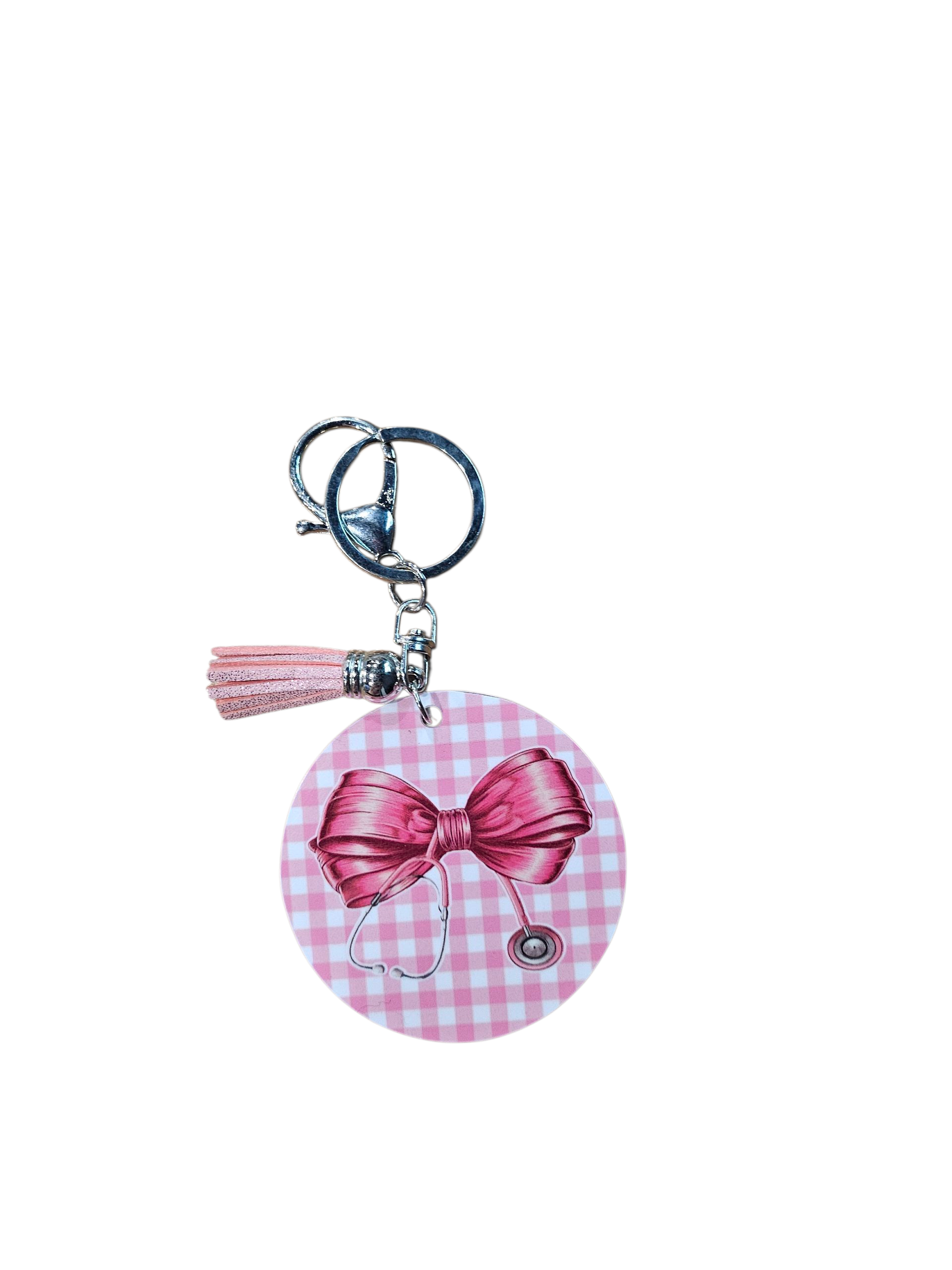 Pink Gingham Coquette Stethoscope Key Chain with Tassel