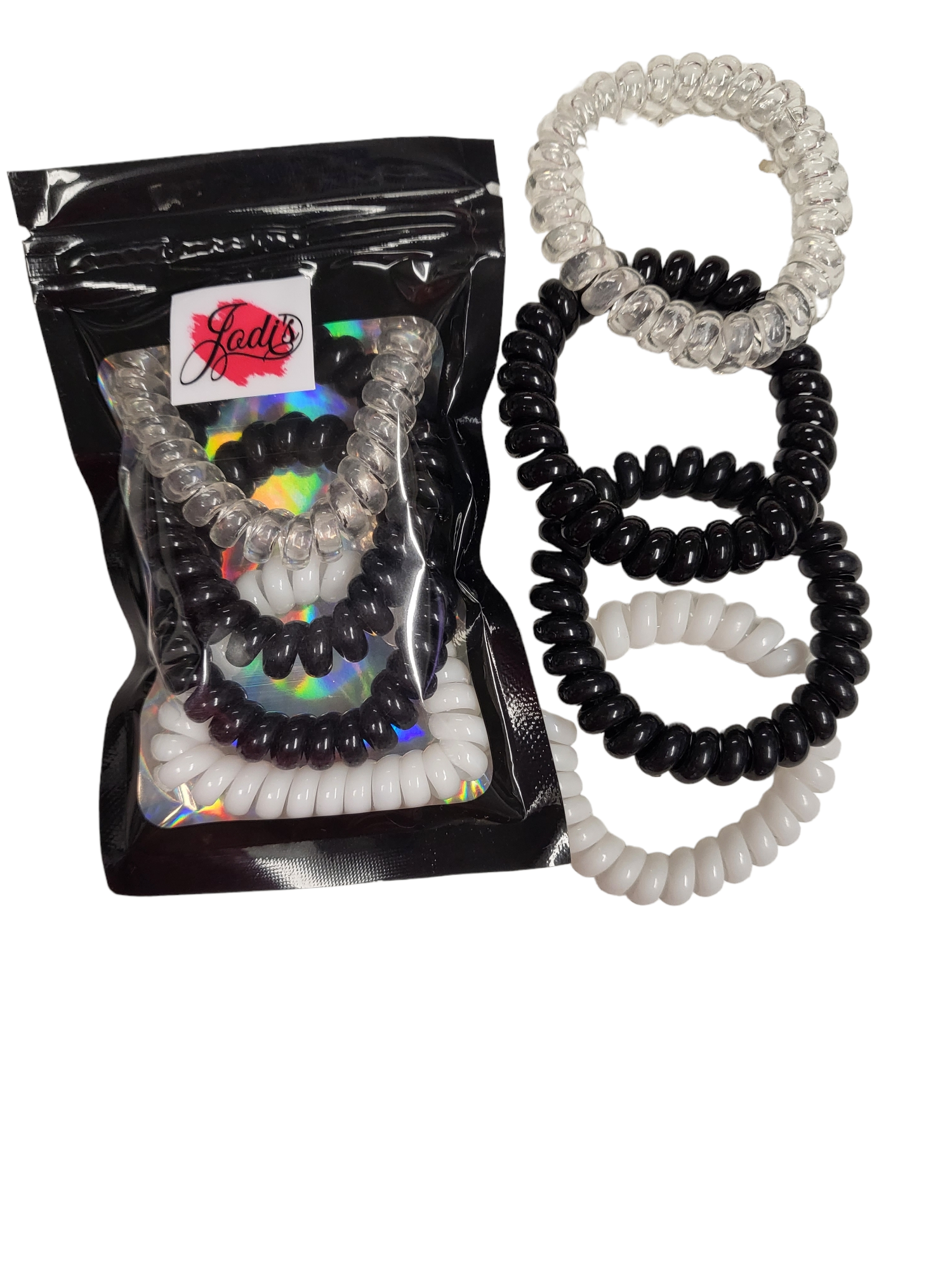Set of 4 Blk ,Clear, & White Hair Cords