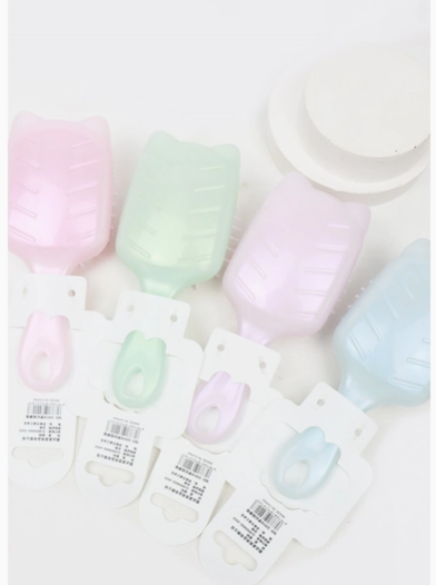 Square-shaped hair brush with a cat-themed design featuring an ergonomic handle for a comfortable grip and bristles designed to be gentle on hair, preventing breakage during use.